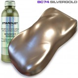 They are classified as metallic effects because they imitate the appearance of raw metals, such as bronze, gold, copper, however, gold metallic paint is mainly a pearlescent type of paint. These semi-opaque paints offer elegant and fine glitter and variable colors over black or white backgrounds. Some other gold paints (liquid gilding) use bronze pigments that perfectly imitate gold. Check out Stardust's unique range of pearlescent paints !