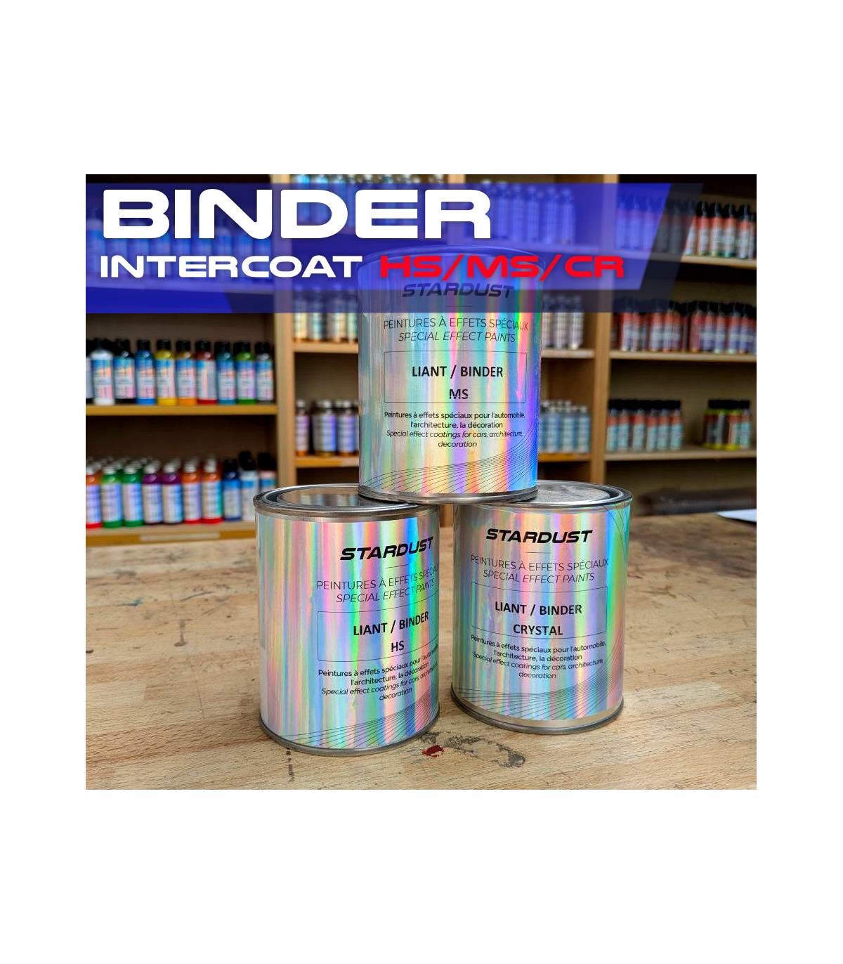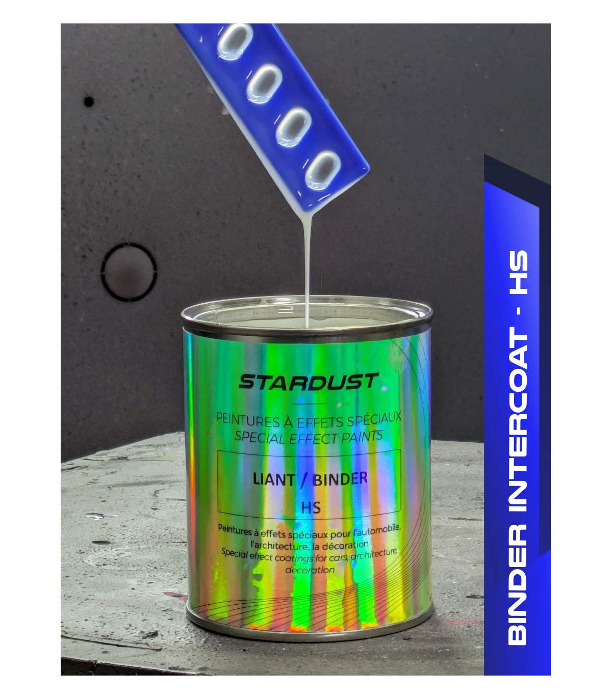 The HS version is a transparent "standard" bodywork binder, suitable for mixing colours, Candy, glitter, or for creating a protective interlayer.