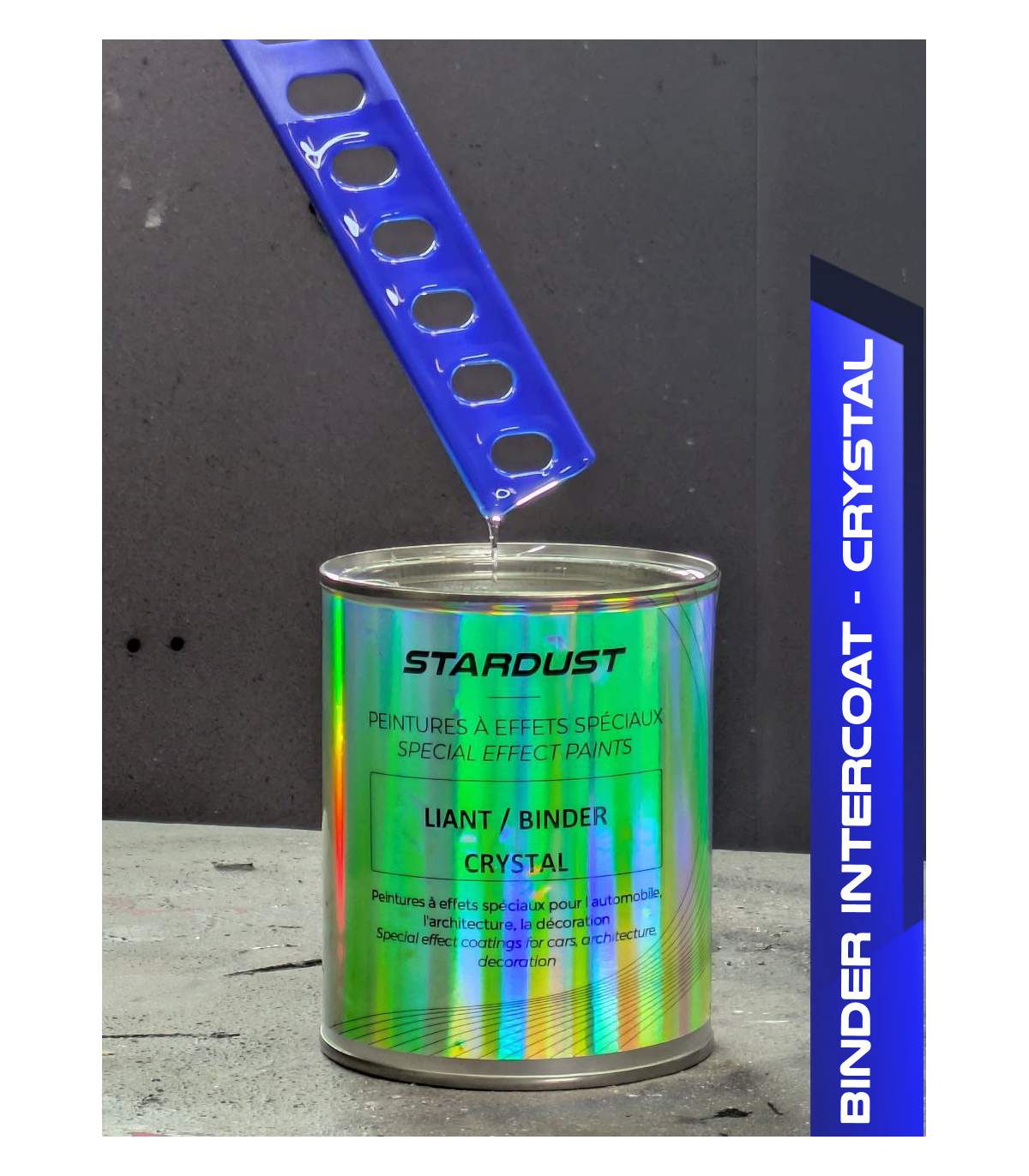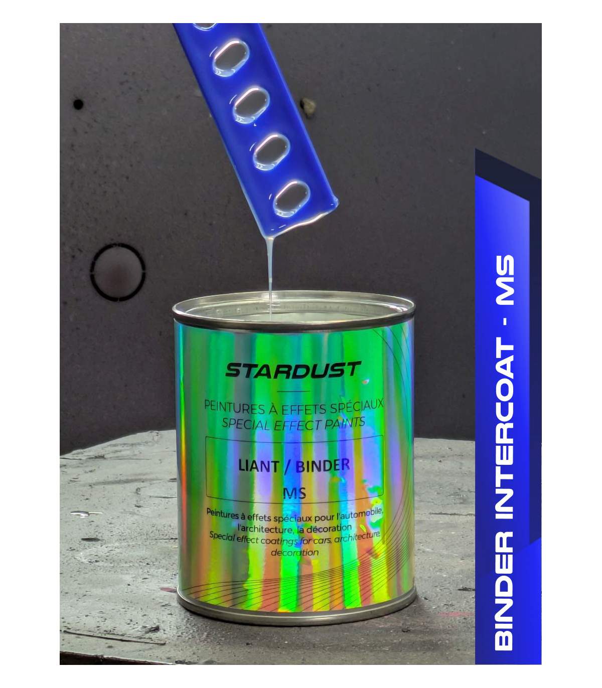 The MS version is a transparent binder specially designed for mixing pearlescents or aluminium pigments, to create pearlescent or metallic paints. It is particularly fine and liquid, and ensures optimal “positioning” of the pigments.
