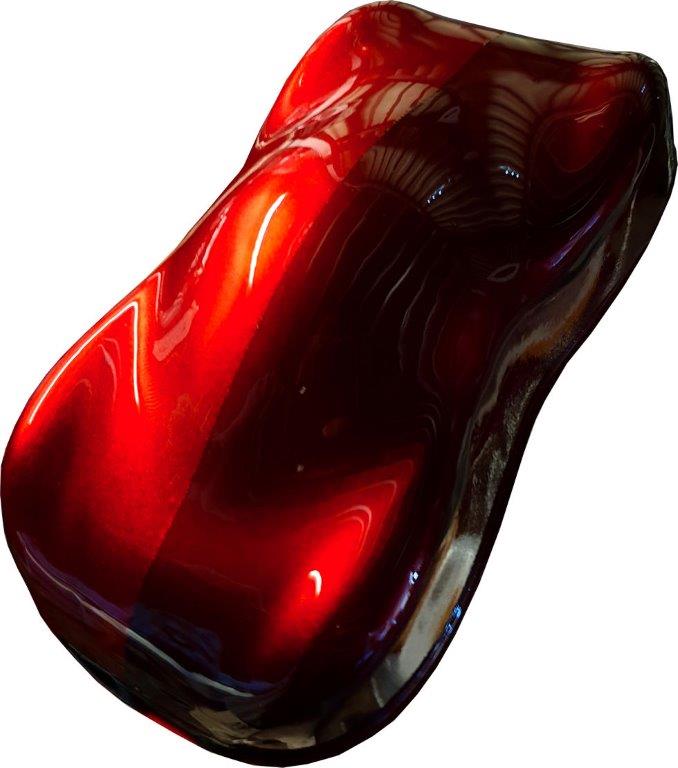 Candy paint is the result of a coloured topcoat applied over a metallic background. The colour of the background must be light and be able to reflect the light through that coloured topcoat.